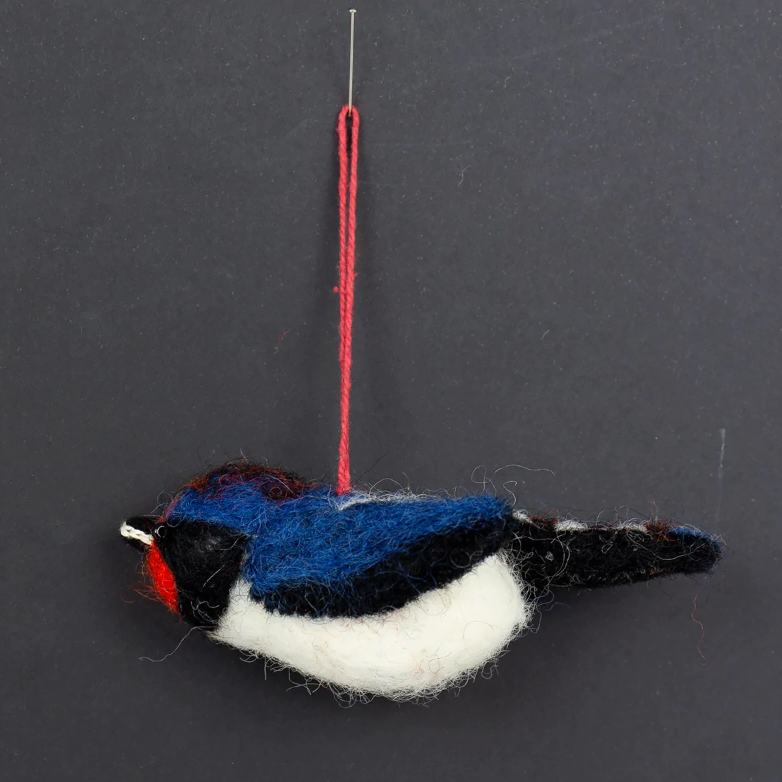 This small Christmas ornament is totally handmade, the great alcedo or kingfisher bird is handfelted.