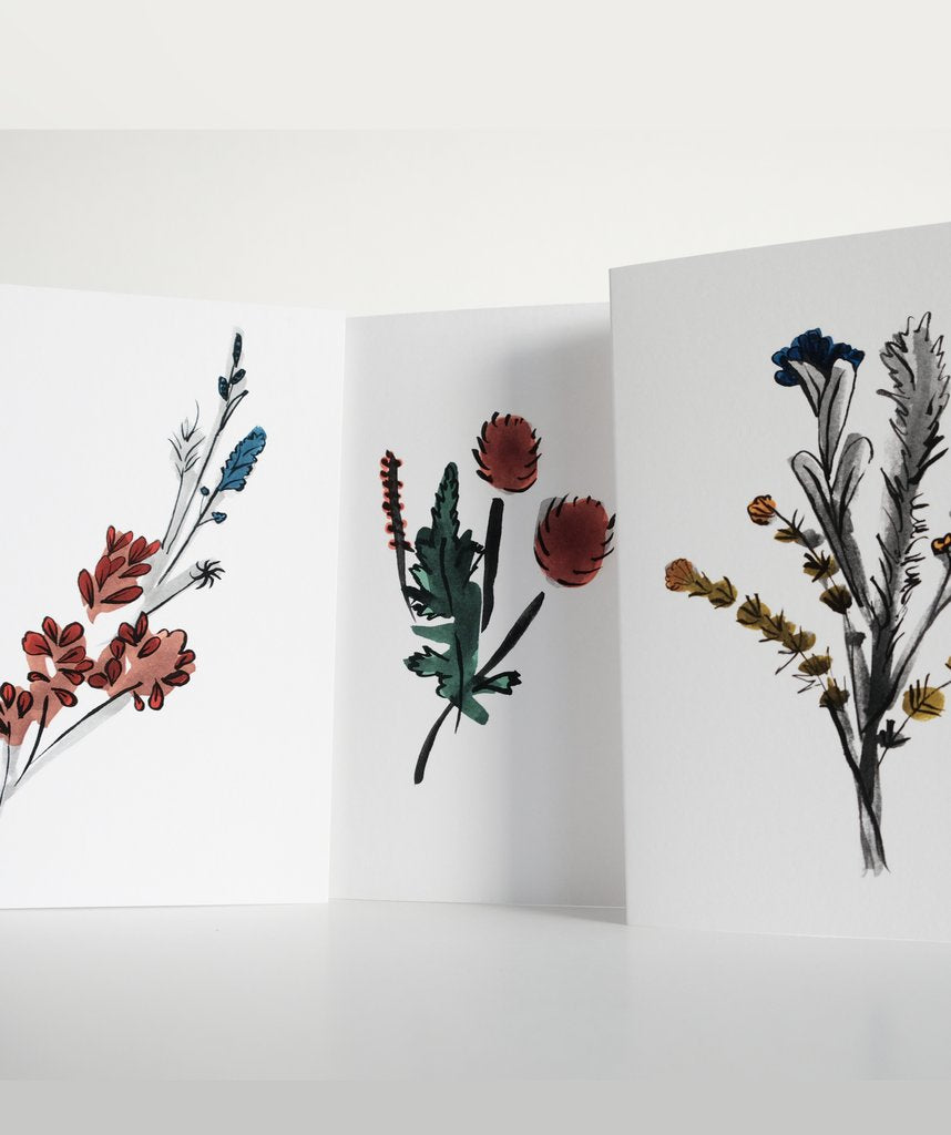 Tækifæriskort með fallegum teikningum af íslenskum plöntum og slæðingum, frá Morra, eftir hönnuðinn Signýju Þórhallsdóttur.