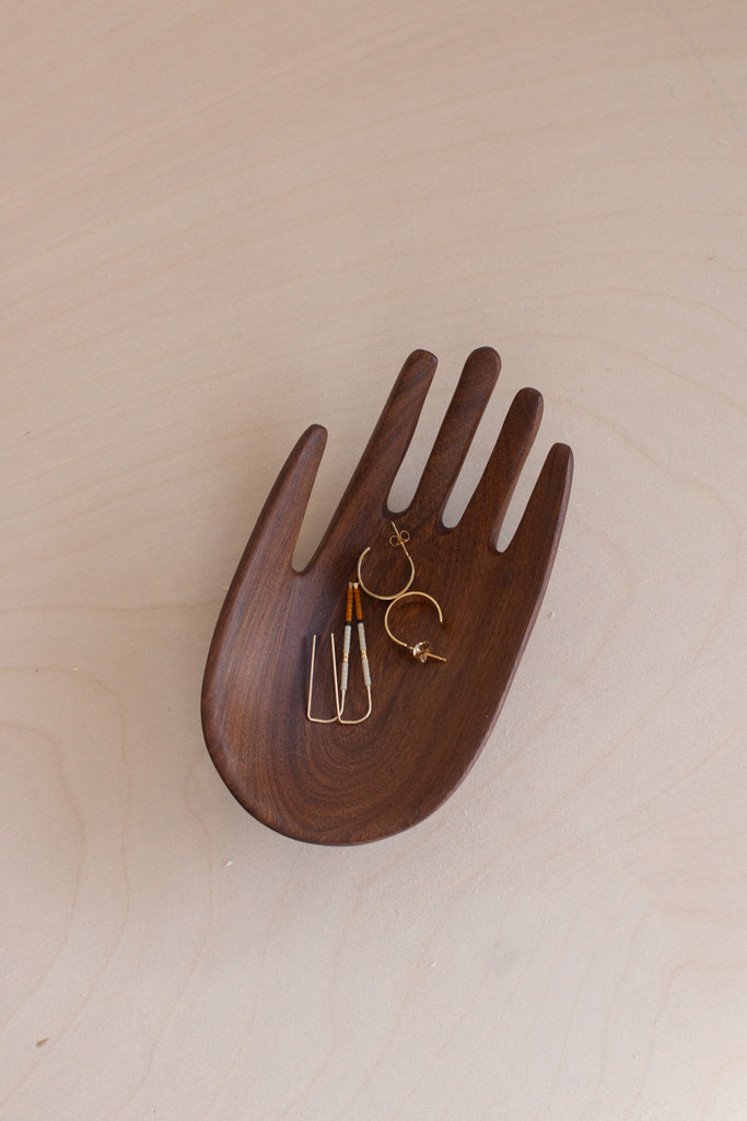 Hand carved from teak wood offcuts, these quirky hands are a treat for your guests to serve themselves salad, pasta, or whatever you've prepared! Every host needs a set, and they make a great housewarming gift! Sealed with raw linseed oil, a food-safe wood sealer. Set of two (2) serving spoons.