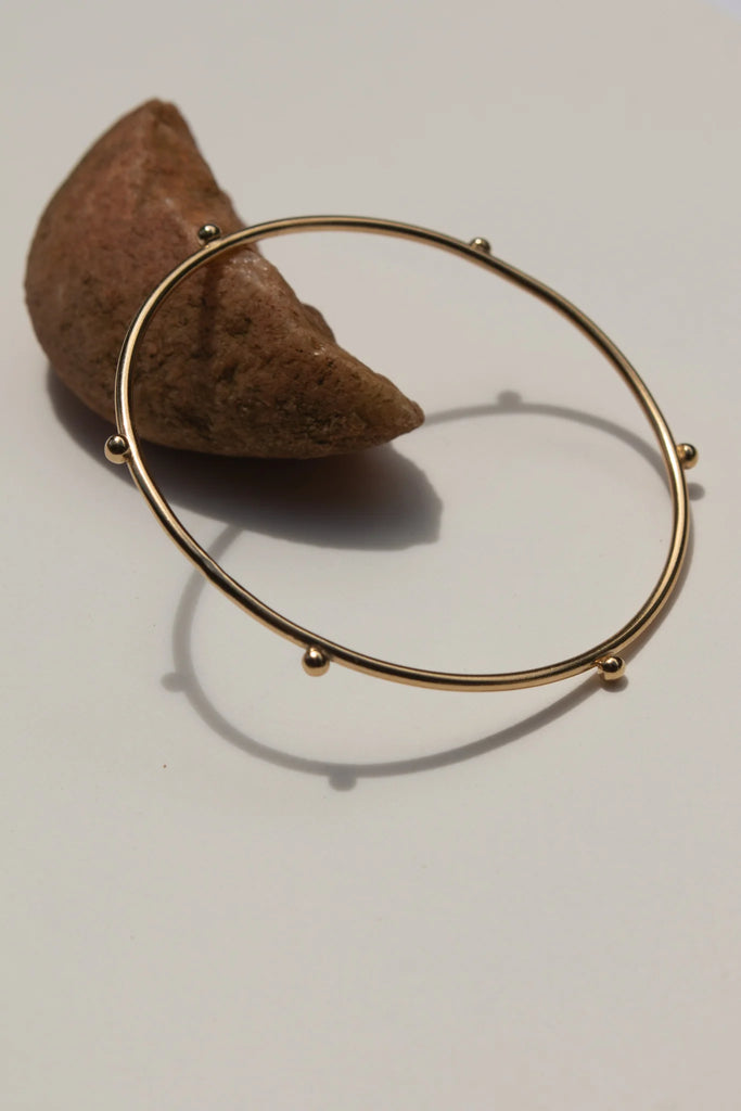 The ‘Yosay‘ Bangle (meaning ‘To Complete’ in Tumbuka) is the perfect combination of ancient design and contemporary minimalism to complete any look. Crafted from brass coated in a luxuriously thick layer of recycled gold (6.5cm diameter), its unique accents offer a subtle, statement-making style that can be worn alone or stacked for extra impact.